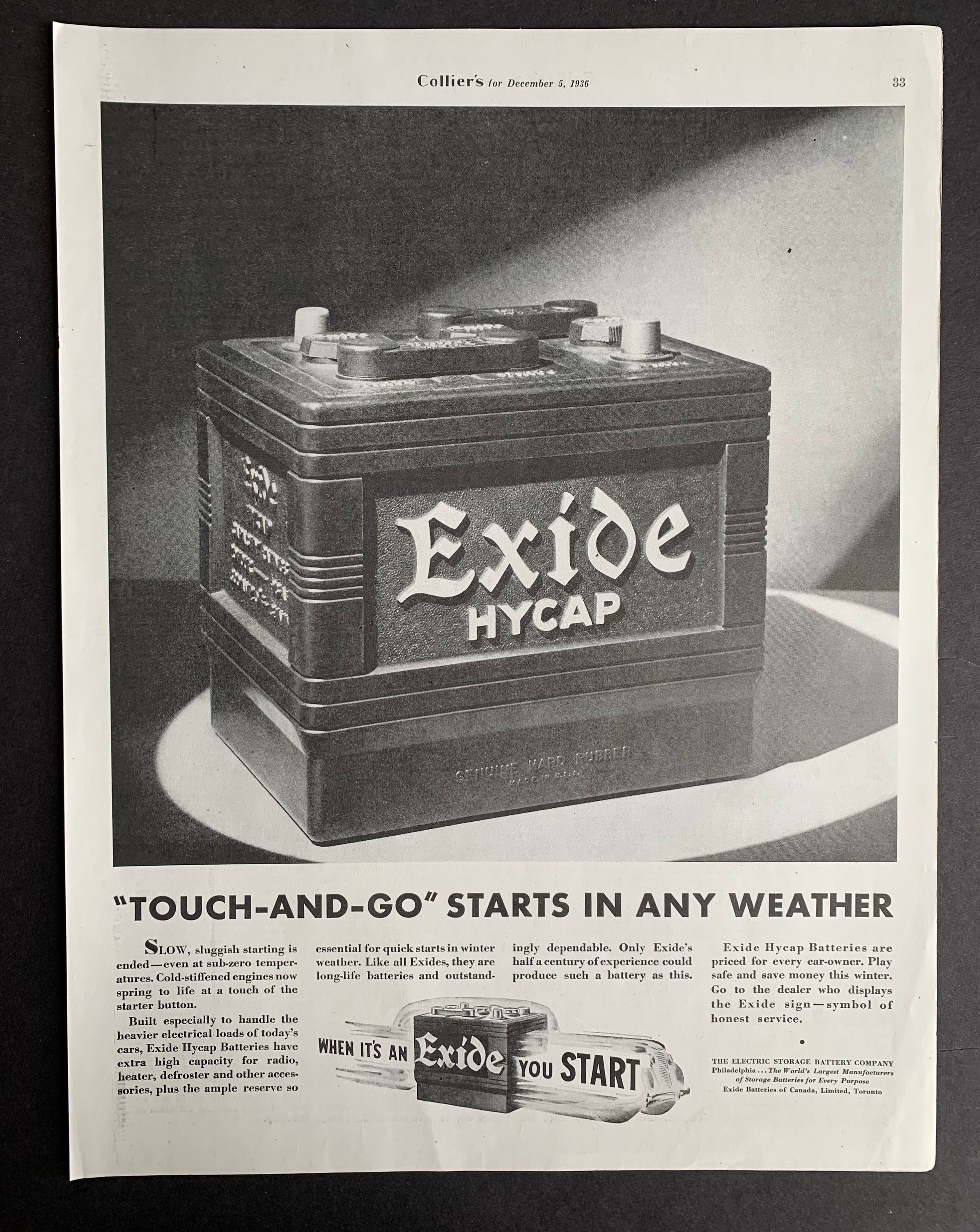 Vintage 1936 Exide Car Battery Print Ad Etsy